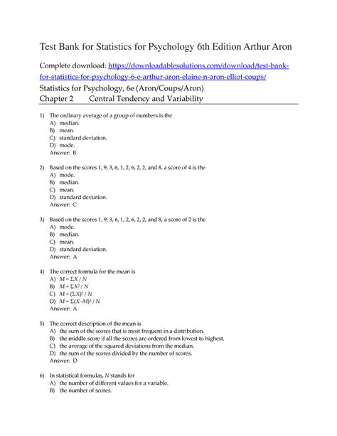 Online PDF STATISTICS FOR PSYCHOLOGY 6TH EDITION ANSWER KEY Doc Library Genesis